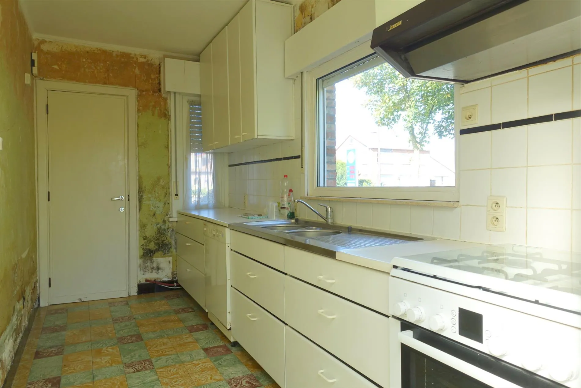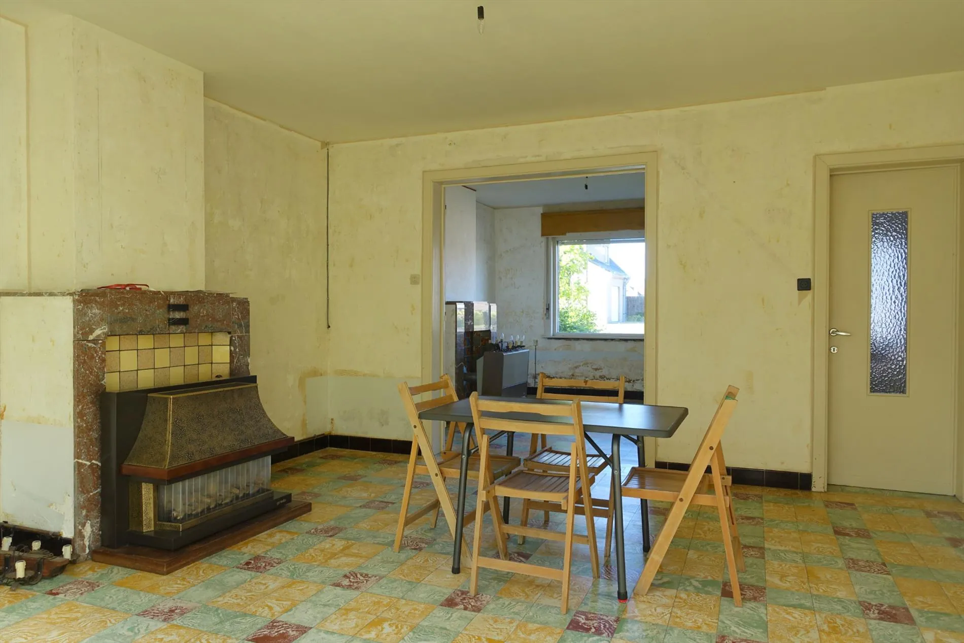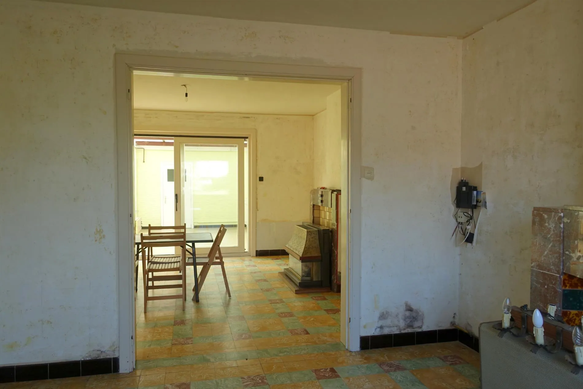 Op een uiterst charmante ligging te Eernegem, treffen we deze karaktervolle woonst aan op een groen perceel van maar liefst 613m². De woning is gedeeltelijk op te knappen (reeds dubbel glas en nieuw dak) en wordt ingedeeld in een inkomhal met massief houten trap naar de 1ste verdieping, de zithoek, een ruime eetplaats, aparte keuken met de koele kelder aangrenzend, een ruime veranda, de achterkeuken en de badkamer. Op de 1ste verdieping geniet de woning van een ruime nachthal en de 3 volwaardige slaapkamers. De Zolder is bereikbaar via valluik in de nachthal. Verder geniet de woning van een ruime achtertuin met wat koterijen en een aparte garagebox die toegankelijk is via de toegangsweg aan de zijkant van het perceel. Neem contact op met ons kantoor en ontdek alle mogelijkheden van deze toffe woonst!