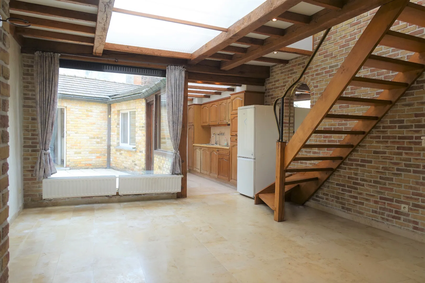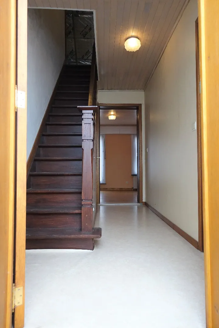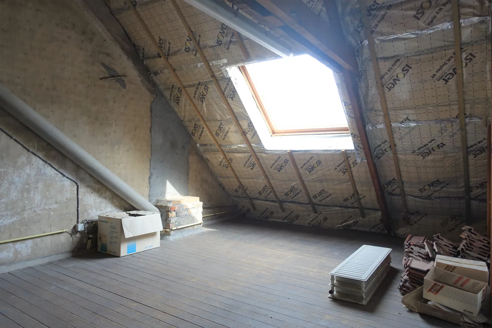 Pal in het centrum van Gistel, op slechts 1 min wandelen van de Markt en alle voorzieningen, treffen we deze toffe rijwoning aan. De woning werd in 1995 grondig gerenoveerd en wordt ingedeeld in een inkomhal, zeer ruime leefruimte met karaktervolle elementen, de open keuken, de badkamer met toilet en een afzonderlijke wasplaats/technische berging. De 1e verdieping is bereikbaar via de open houten trap en biedt plaats aan de centrale nachthal, 2 ruime slaapkamers en een nachttoilet. De geïsoleerde zolder (24,36m²) is bereikbaar via de vaste trap en biedt tal van mogelijkheden. Tot slot geniet de woning van een lichtrijke koer.