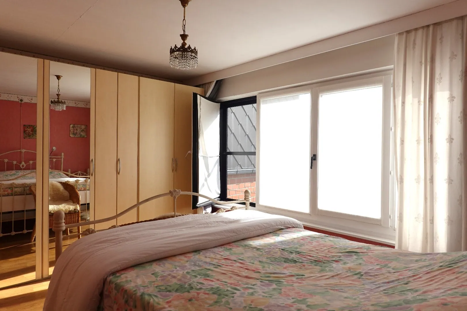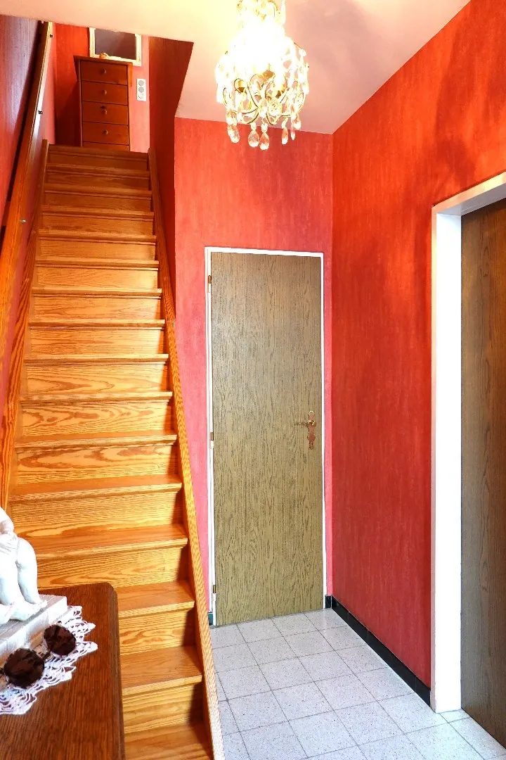 Ruime inkomhal met apart toilet, lichtrijke leefruimte met gezellige zithoek, de aparte keuken, een droge kelder en tot slot de afzonderlijke, ruime wasplaats/berging. De eerste verdieping is bereikbaar die samengesteld wordt uit een centrale nachthal, 2 zéér ruime slaapkamers en de badkamer. De zolderverdieping is bereikbaar via het luik in de nachthal.