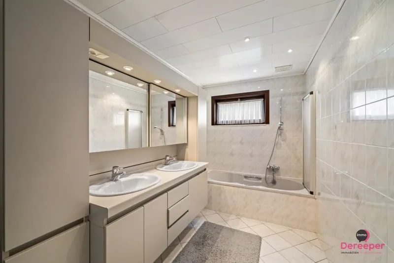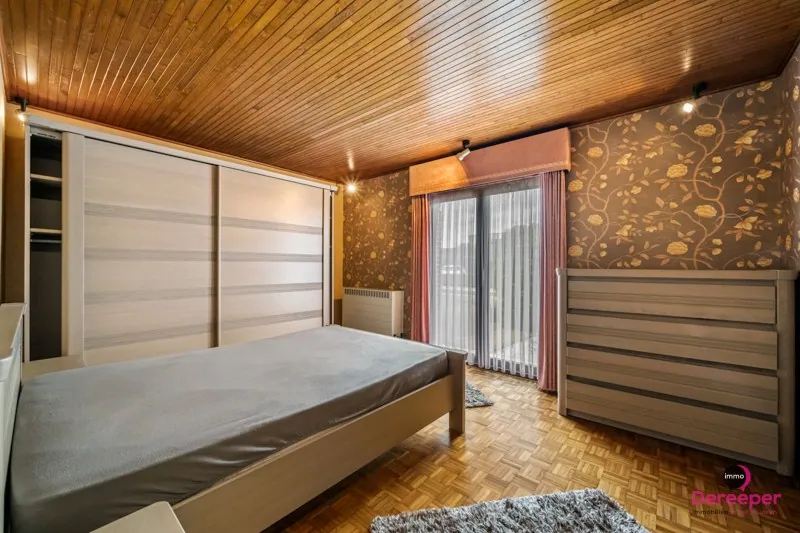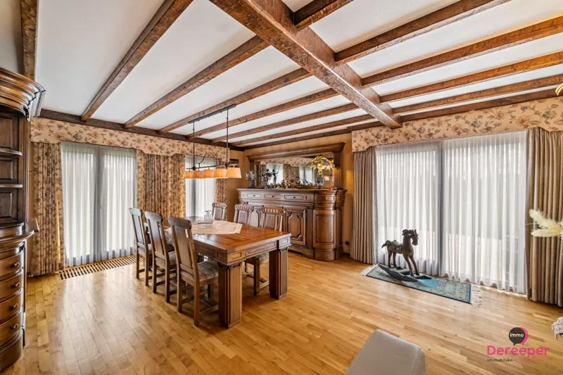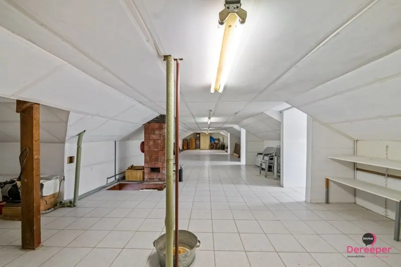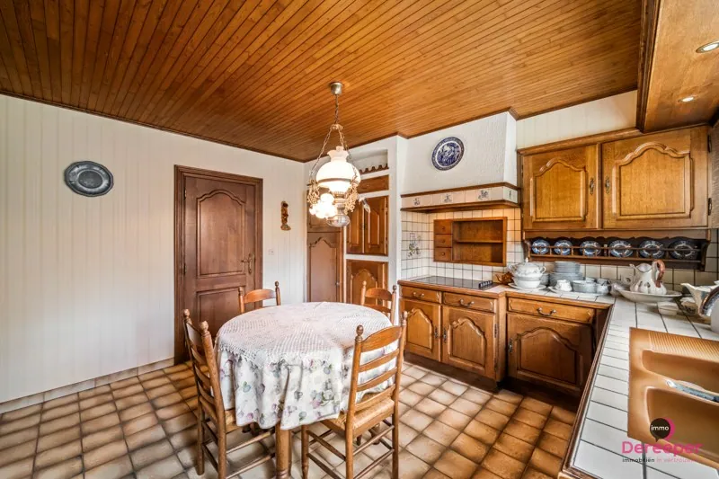 Binnenin beschikt de woning over een bewoonbare oppervlakte van 135 m². De ruime leefruimte straalt warmte en authenticiteit uit dankzij de prachtige volle eiken balken, die het interieur een karaktervolle en gezellige uitstraling geven. De bungalow biedt daarnaast nog 3 slaapkamers, een ingerichte badkamer, een bureau, een wasplaats en een ruime zolder die tal van mogelijkheden biedt, bijvoorbeeld als extra bergruimte (110 m²).