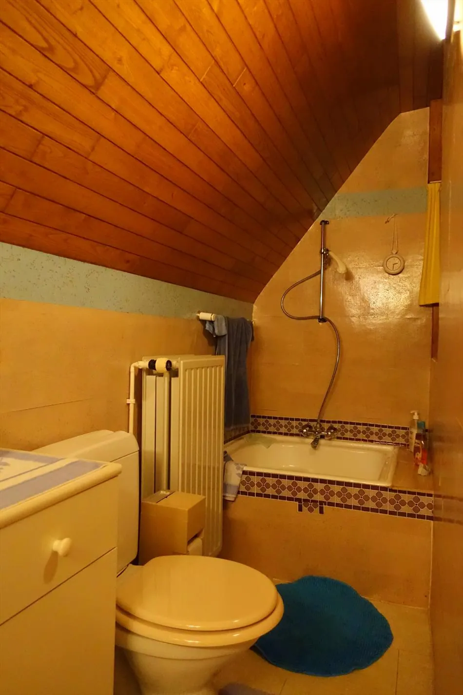 Gelegen langs de Aartrijksesteenweg te Jabbeke, op een boogscheut van alle voorzieningen en de autosnelwegen, treffen we deze leuke woonst aan op een perceel van 834m². De woning bevindt zich in een perfecte staat van onderhoud, maar dient aangepast te worden aan de huidige normen. De gelijkvloerse verdieping wordt samengesteld uit een inkomhal, een leuke eetplaats, de gezellige zithoek, een koele kelderberging, een aparte leefkeuken met zicht op de tuin en aansluitend een berging. Op de 1ste verdieping bereiken we via de nachthal de badkamer, 3 volwaardige slaapkamers en een bergzolder. Verder geniet het pand van een grote groene achtertuin met tuinhuis en aparte garagebox (7,08m x 3,06m). Bel ons snel voor een bezoek en ontdek deze leuke woning met al haar mogelijkheden!