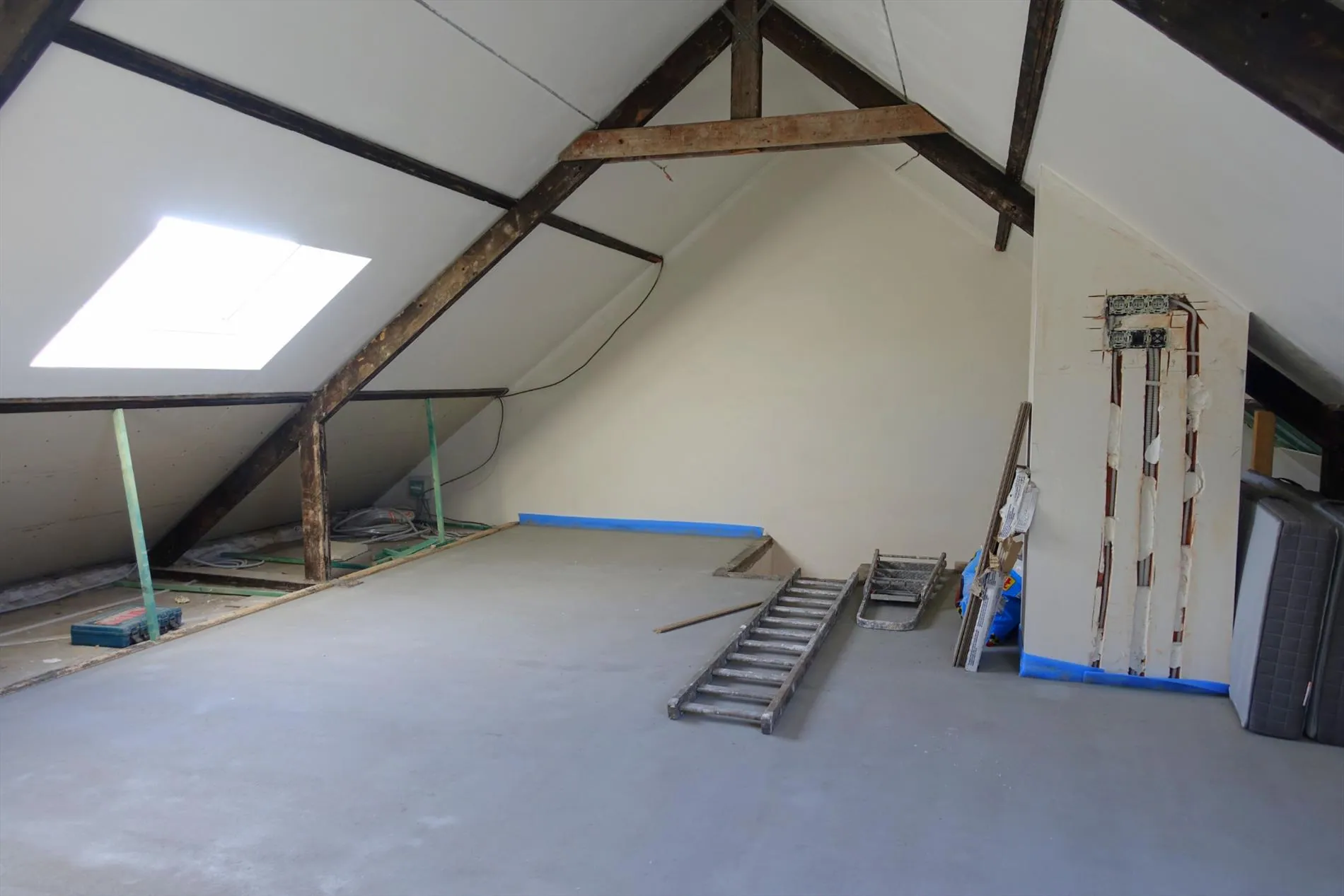 Gelegen in de rustige Hogedijkenstraat, op wandelafstand van het centrum van Jabbeke en alle voorzieningen, treffen we deze toffe woonst op een perceel van 303m². De woning werd reeds voor 90% gerenoveerd (o.a. dak volledig vernieuwd en geïsoleerd + elektriciteit conform) en wordt samengesteld uit een inkomhal, een ruime en uiterst gezellige leefruimte, een grote leefkeuken met berging, de praktische wasplaats (13m²) met plaats voor stockage en alle technische toestellen en de badkamer op het gelijkvloers. De 1ste verdieping is bereikbaar via de trap vertrekkend vanuit de inkomhal en beschikt over een ruime nachthal met toegang tot de 3 volwaardige slaapkamers en een splinternieuwe badkamer met ligbad en 2e toilet. Sinds vorig jaar is de zolderruimte van maar liefst 50m² toegankelijk langs een splinternieuwe (vaste) houten trap en werd deze ruimte omgevormd tot een prachtige polyvalente ruimte. Tot slot geniet de woning van een leuke achtertuin met terras en een garage van maar liefst 20,50m² met toegang tot de tuin. Neem snel contact op met ons kantoor en plan uw bezoek in aan deze topper! (EPC-waarde dateert van voor de verbouwingen)