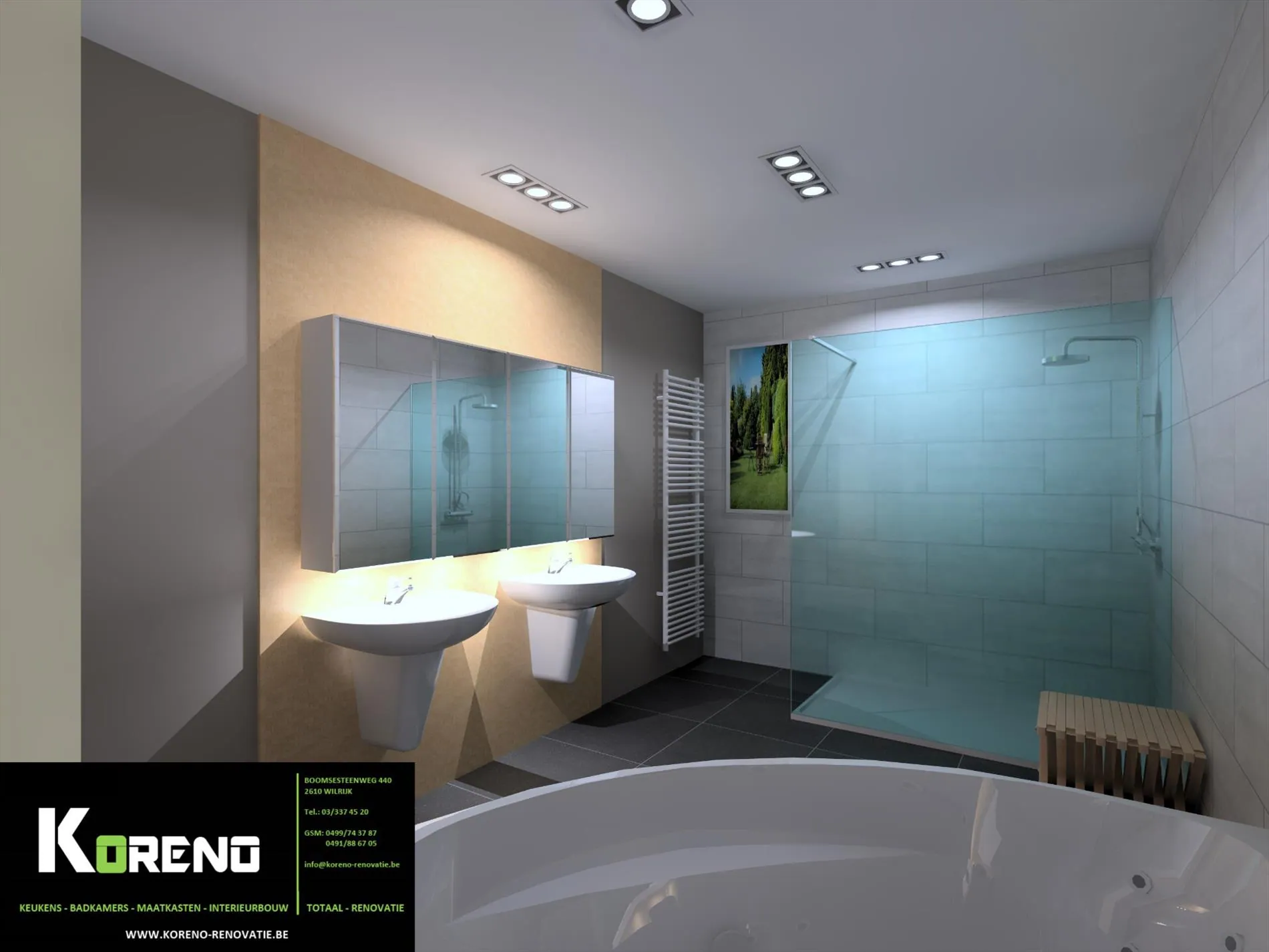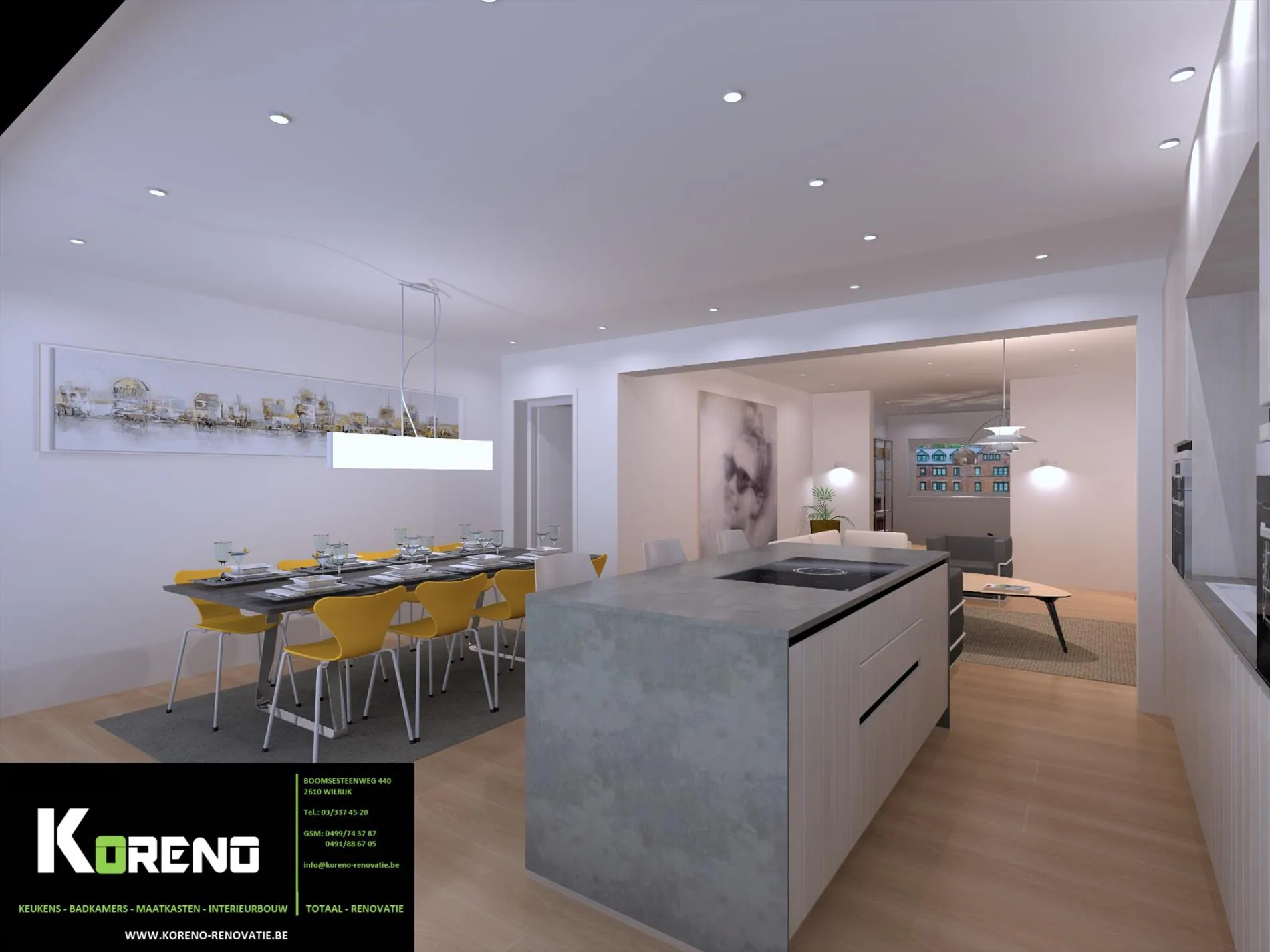 De 3D-afbeeldingen geven een realistische weergave van hoe uw toekomstige benedenverdieping er kan uitzien na renovatie door Koreno. Alle info te verkrijgen via ons kantoor.