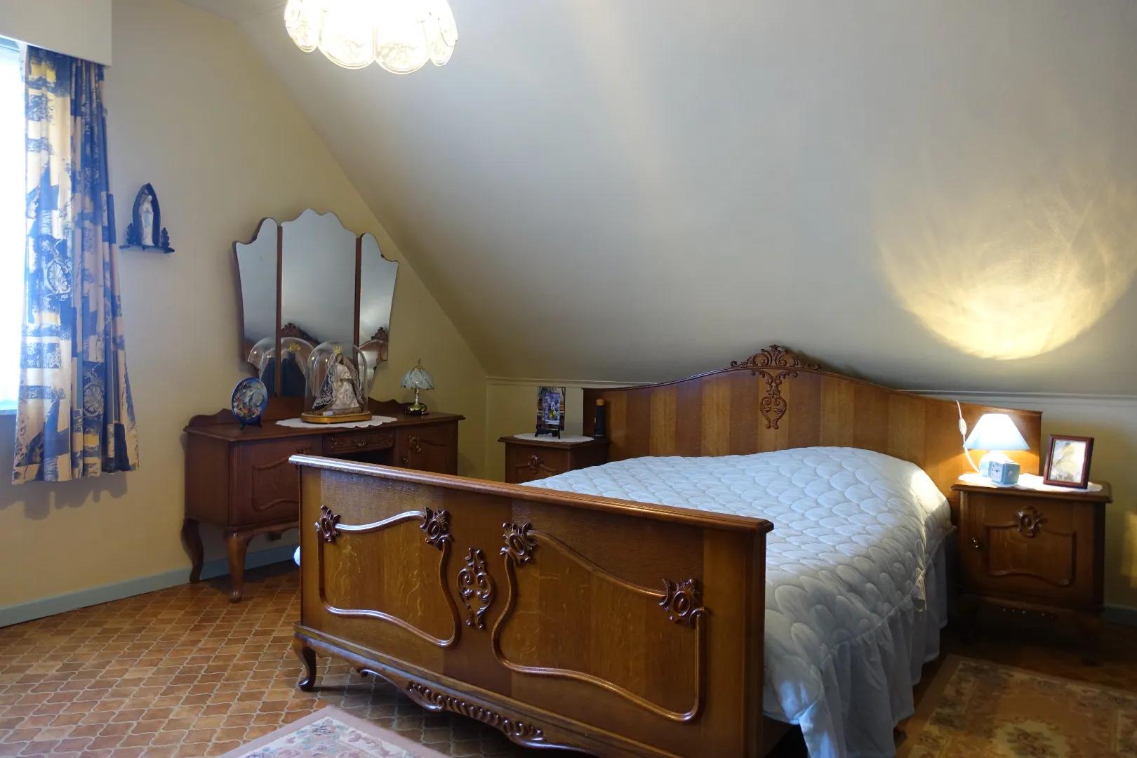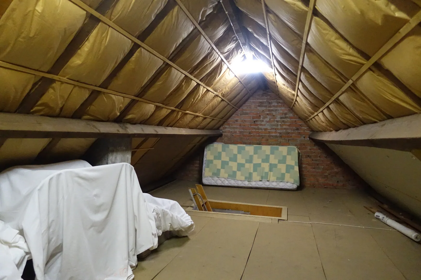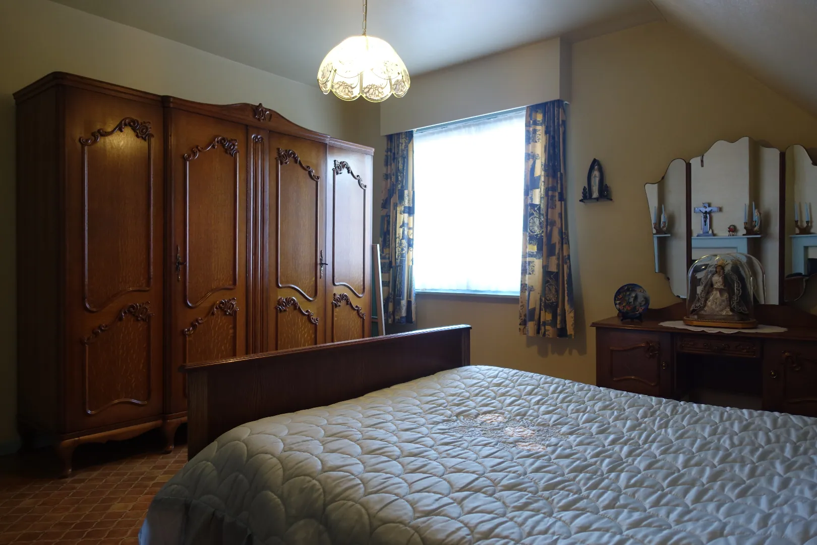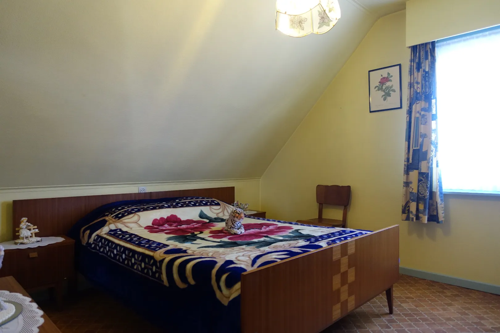 De centrale inkomhal, een grote polyvalente voorplaats, de grote leefkeuken, de lichtrijke eetplaats, een gezellige zithoek, de badkamer met toilet, een veranda met toegang tot de tuin en de aangebouwde garage/bergplaats. De 1ste verdieping wordt ingedeeld in een ruime nachthal die toegang biedt tot 4 volwaardige, grote slaapkamers. De zolder is toegankelijk via een luik en biedt extra bergplaats.