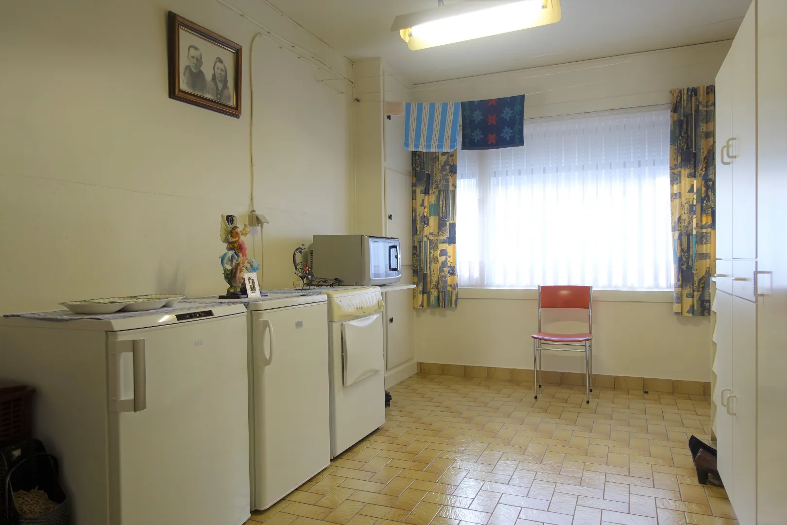 In een rustig zijstraatje in het centrum van Jabbeke, op wandelafstand van scholen, winkels, Markt etc. bevindt zich deze op te frissen woning. De woning werd zeer kloek gebouwd in 1963 en werd steeds perfect onderhouden door de 1ste eigenaar. De indeling gaat als volgt: