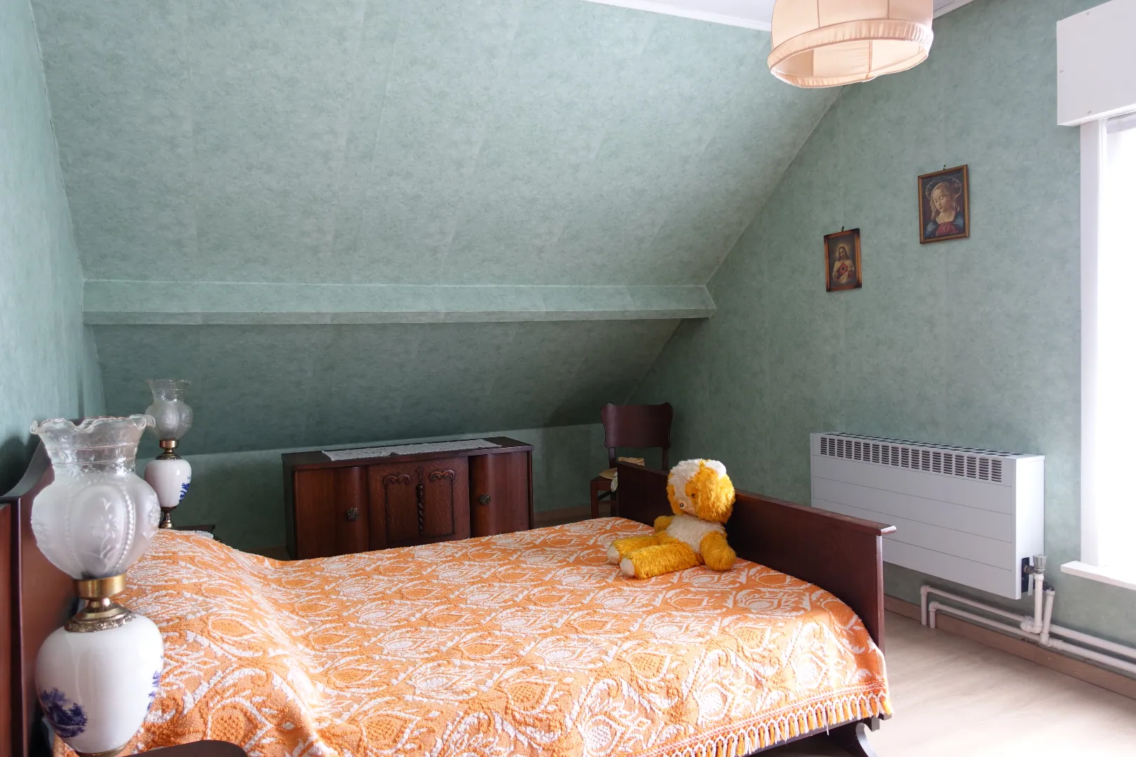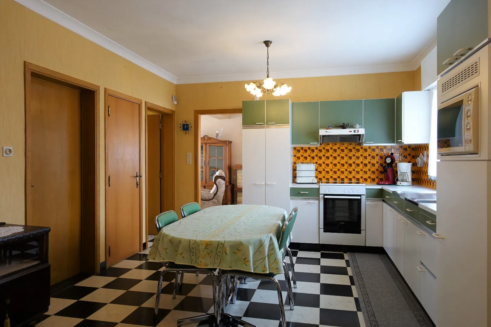 In een klein, doodlopend zijstraatje van de Hogedijkenstraat, net buiten het centrum van Jabbeke treffen we deze alleenstaande woning aan. De woning werd kwalitatief gebouwd in 1961 op een perceel van liefst 849m² en werd steeds perfect onderhouden. Op heden geniet de eigendom volgende indeling: Inkomhal, grote leefkeuken (20,59m²), lichtrijke leefruimte, een gelijkvloerse slaapkamer, de badkamer, de veranda en tot slot de inpandige garage (17,77m²). De verdieping biedt plaats aan de centrale nachthal, één zeer grote slaapkamer (26,85m²) met bijkamertje en de laatste slaapkamer. Verder geniet de woning van een verzorgd perceel rond-om-rond en ruime, groene achtertuin met tuinbergingen (38,09m²).