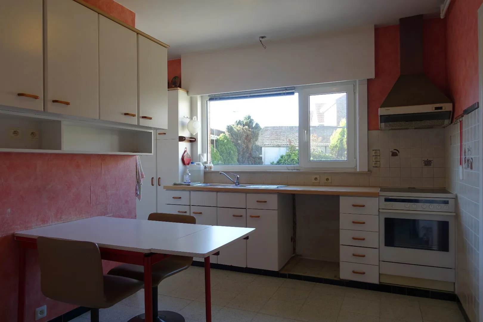 Gelegen in de dorpskern van Jabbeke, met alle voorzieningen in de nabijheid, treffen we deze kloeke woonst op een perceel van 243m². De woning werd zeer degelijk gebouwd in 1964 en wordt ingedeeld als volgt: centrale inkomhal, polyvalente kamer/bureel, lichtrijke leefruimte, klassieke veranda, aparte leefkeuken, droge kelderberging, de badkamer met ligbad en tot slot de grote garage (23,17m²) met aangrenzende berg- en werkplaats (22,13m²). De verdieping is bereikbaar via de authentieke trap vertrekkend uit de inkomhal en biedt plaats aan de centrale nachthal, een apart toilet en 4 volwaardige slaapkamers. De ruime zolder (49,70m²) is toegankelijk via het luik in de nachthal.