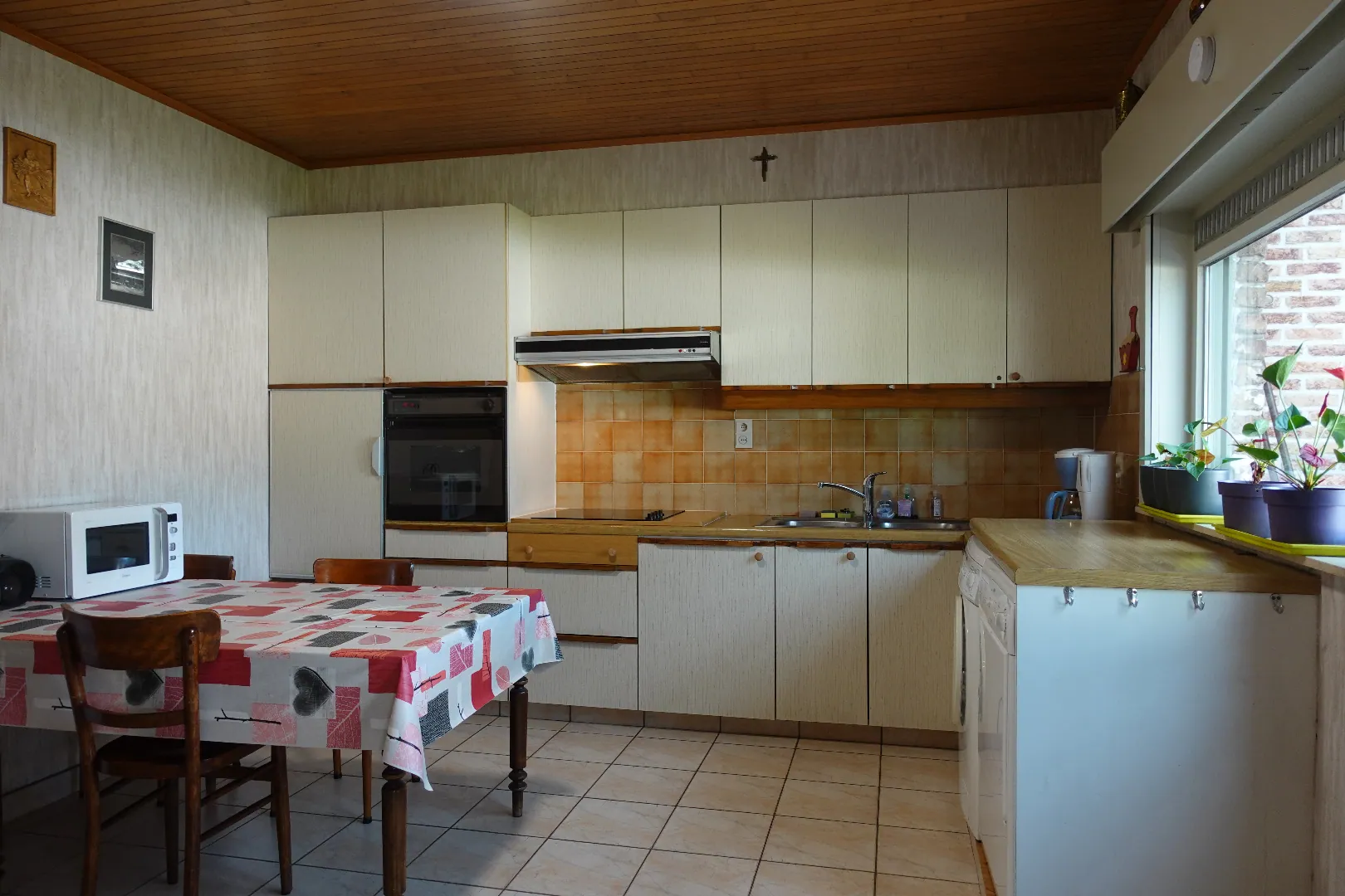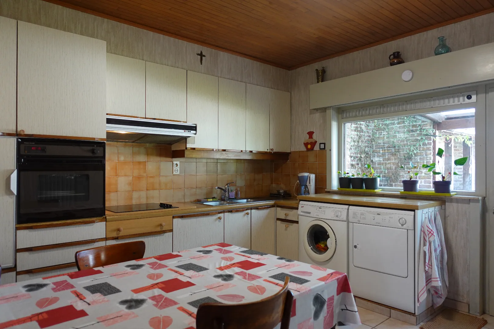 In het centrum van Oudenburg, op wandelafstand van alle voorzieningen, treffen we deze bijzonder ruime hoekwoning aan op een perceel van 254m². De woning werd zeer kloek gebouwd in 1982 en wordt ingedeeld in een ruime inkomhal met apart toilet, een aparte wasplaats, een grote bergruimte, de aparte leefkeuken en de ruime woonkamer met gezellige kachel. De 1ste verdieping is bereikbaar via massief houten trap vertrekkend uit de inkomhal en biedt plaats aan de centrale nachthal, 4 volwaardige slaapkamers, de badkamer met douche en een apart toilet. De volledige woning is voorzien van een zolder.