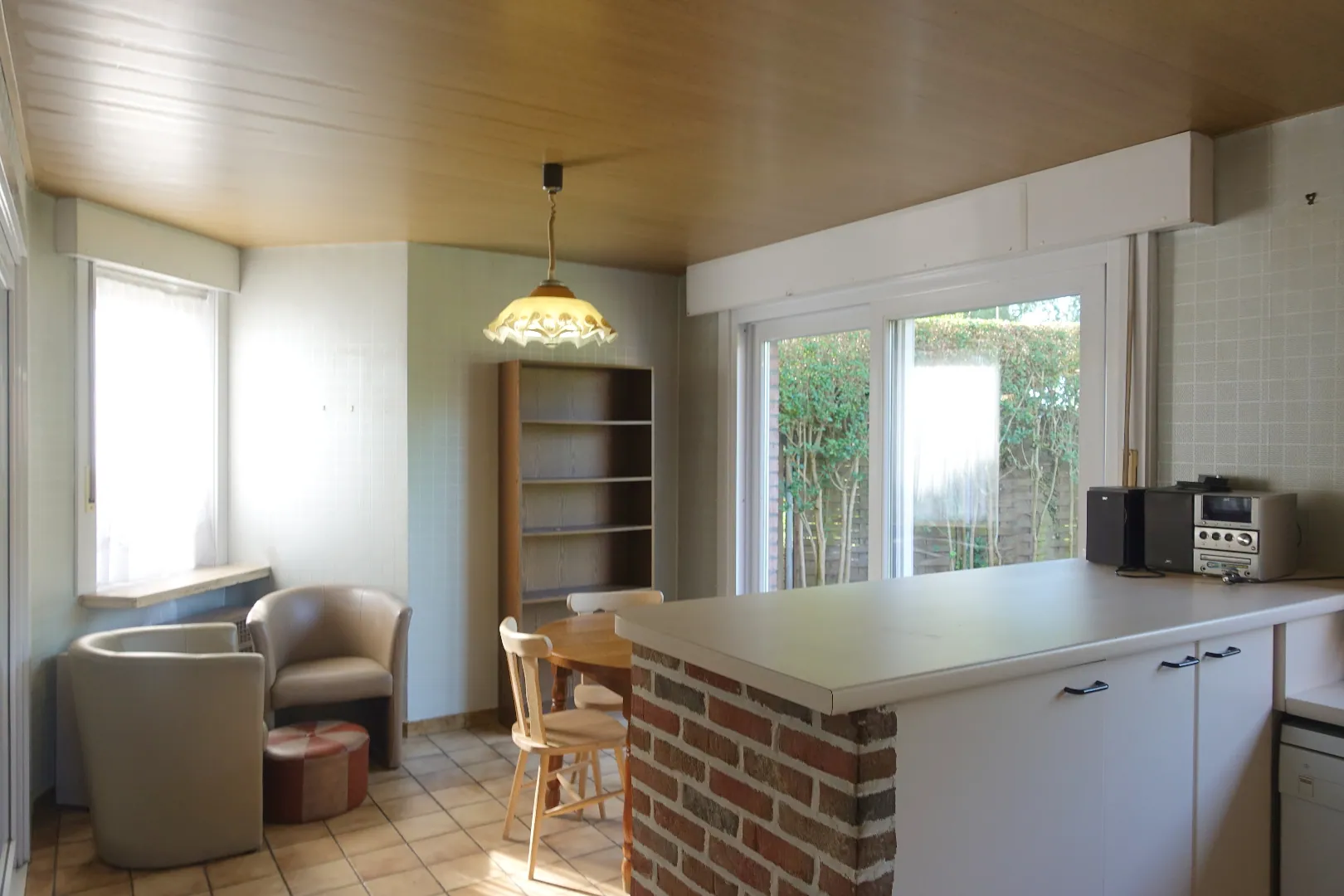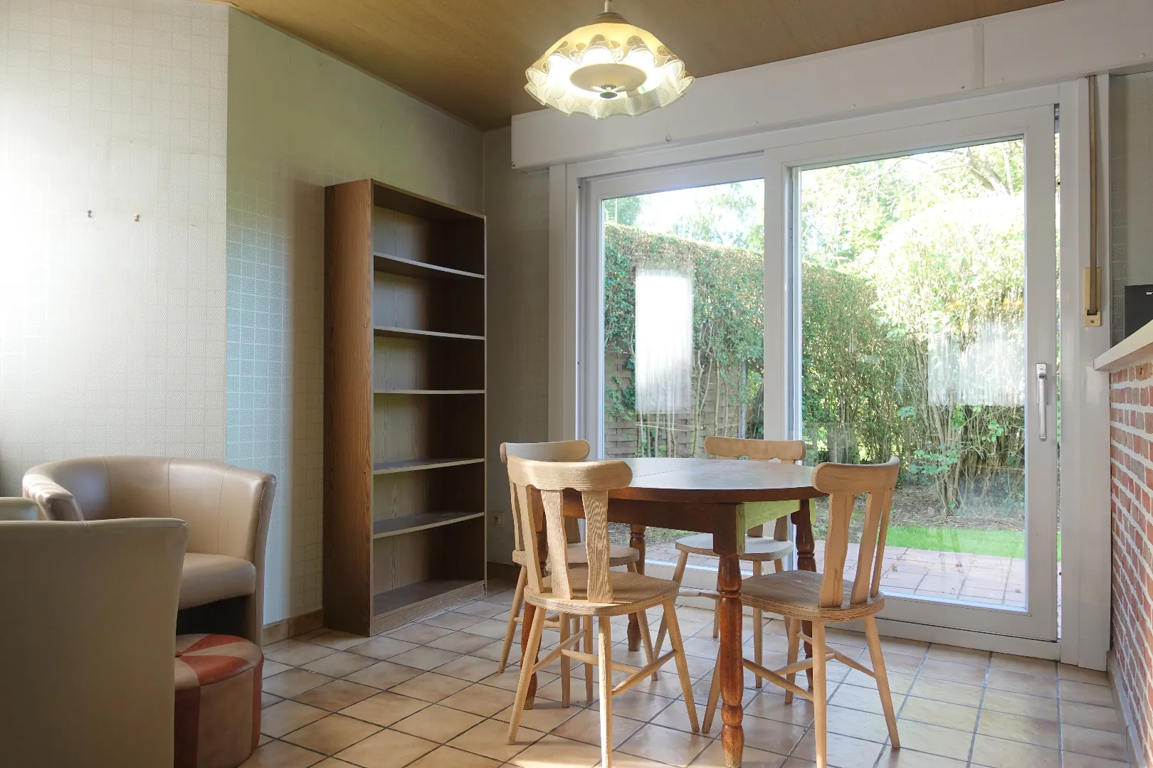 Deze charmante woning is gelegen in de rustige buurt 't Veld in Aartrijke, nabij de grote verbindingswegen. De alleenstaande woning werd gebouwd in 1954 op een groen perceel van 650m² en geniet volgende indeling op het gelijkvloers: Ruime inkomhal met toegang tot de droge kelder, de lichtrijke leefruimte met authentieke parketvloer, de wasplaats, het apart toilet en de grote leefkeuken (+/- 21m²) met zicht op de achtertuin. De 1ste verdieping beschikt over kloeke betongewelven en biedt plaats aan de centrale nachthal, de badkamer met 2e toilet, 2 dubbele slaapkamers en één kinderkamer waaruit de zolder (26,30m²) bereikbaar is. Tot slot geniet de eigendom van een prachtige, groene achtertuin en een vrijstaande garage (19,25m²) met zolder.