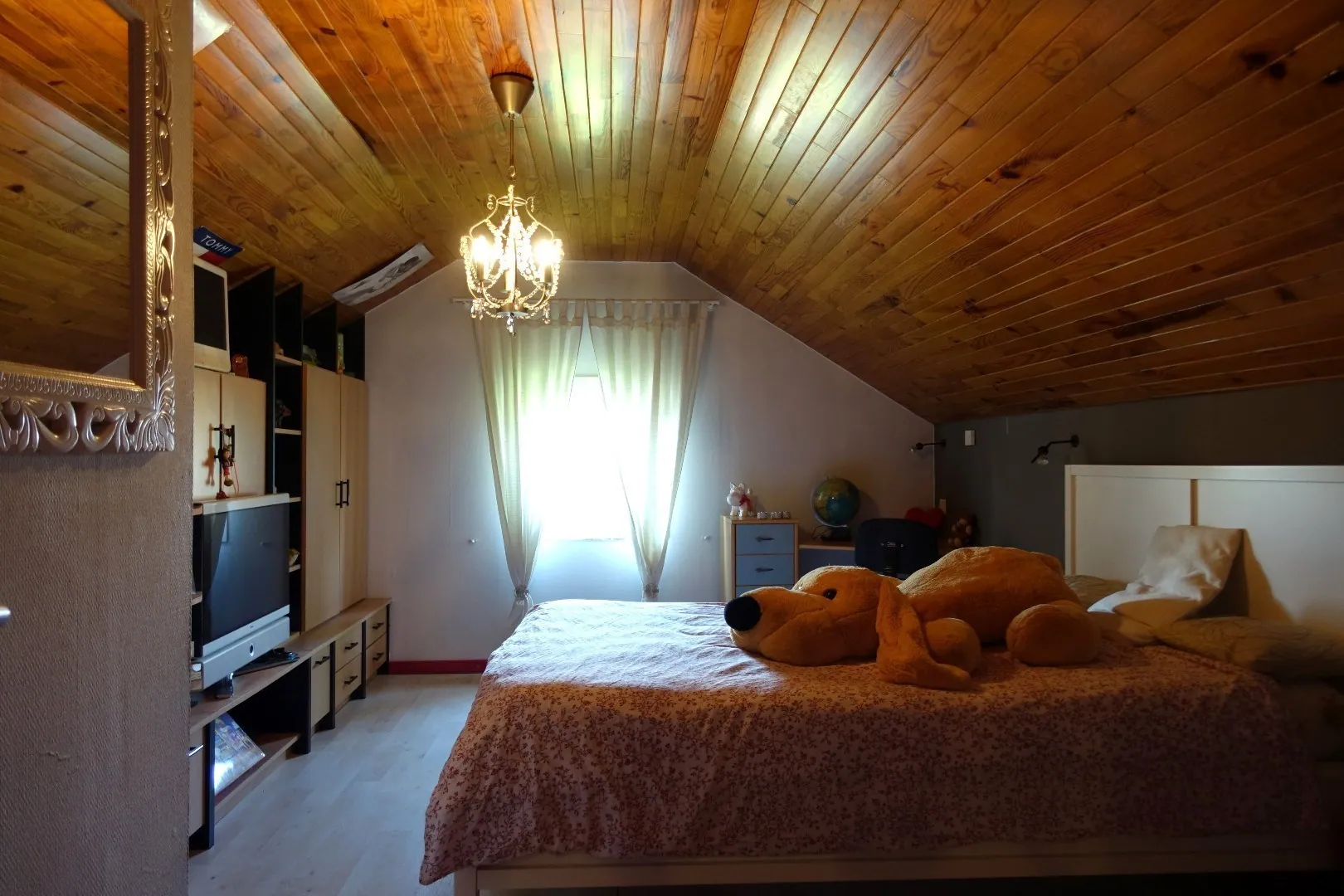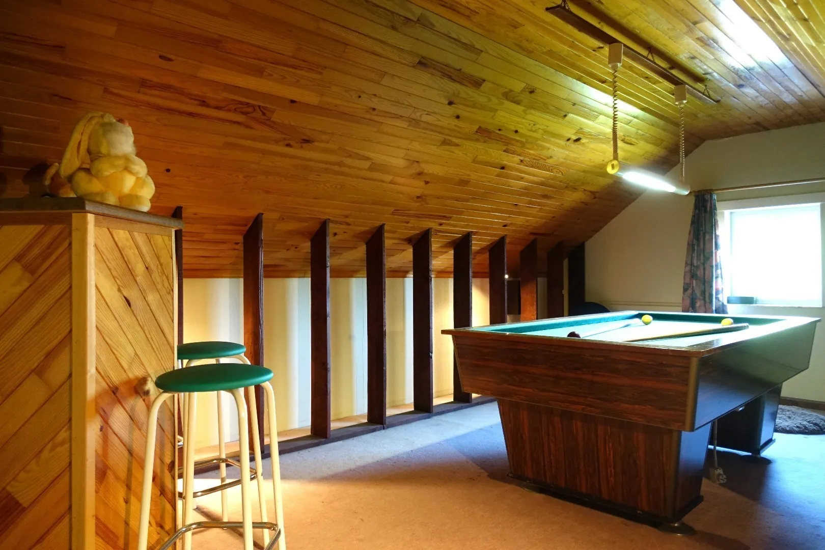De woning wordt ingedeeld met op het gelijkvloers een ruime inkomhal met gastentoilet en prachtige stalen binnendeur die verder toegang biedt tot de lichtrijke en gezellige woonkamer voorzien van een moderne pelletkachel, een volledig ingerichte keuken die slechts 5 jaar geleden werd vernieuwd met aansluitend de veranda die uitkijkt op de mooie grote tuin, een praktische inpandige garage voorzien van ingemaakte kasten, een ruime berging, 3 slaapkamers waarvan de master bedroom met sterrenhemel en uitkijkend op de tuin, en een badkamer met ligbad en douche. De eerste verdieping omvat een nachthal, een bureauruimte, 2 slaapkamers en zolderruimtes die ideaal zijn als opslagruimte.