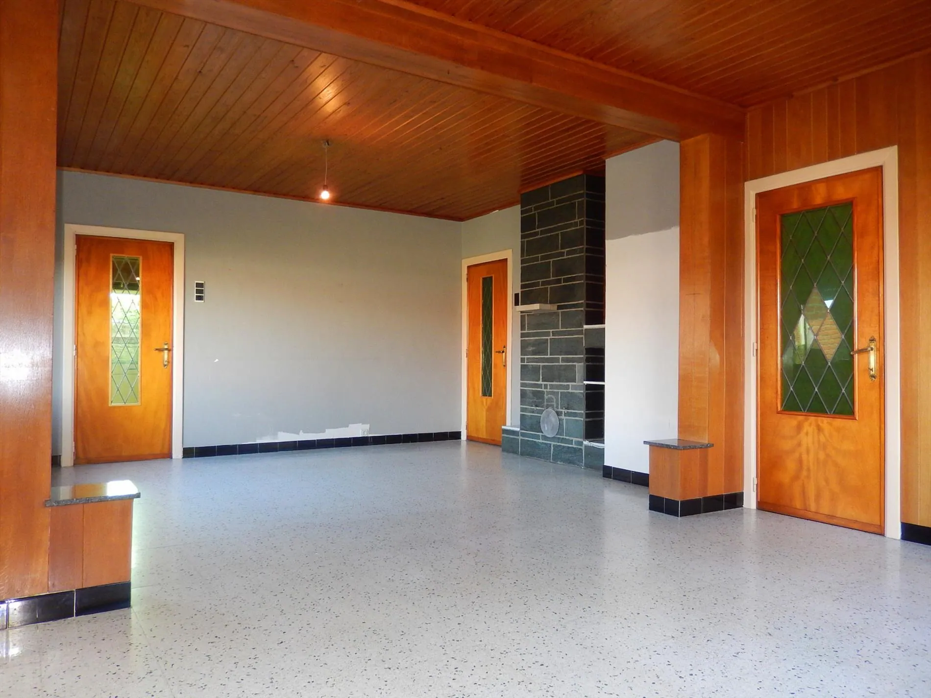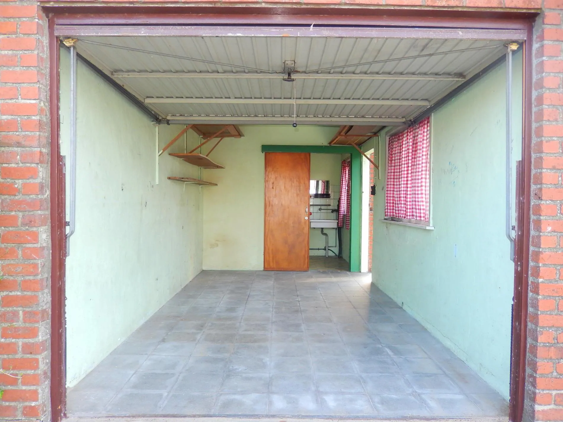 Deze op te frissen woning heeft een inkomhal, een ruime woonkamer met aansluiting voor een haard, een ruime keuken met veel lichtinval, een veranda, een badkamer, drie slaapkamers en een zolder. Buiten is er nog een aparte garage met wasplaats en verschillende koterijen voorzien. Vooraan is er een zuid-west gerichte tuin. Mogelijkheid tot uitbreiden van de woning! Klein beschrijf mogelijk!