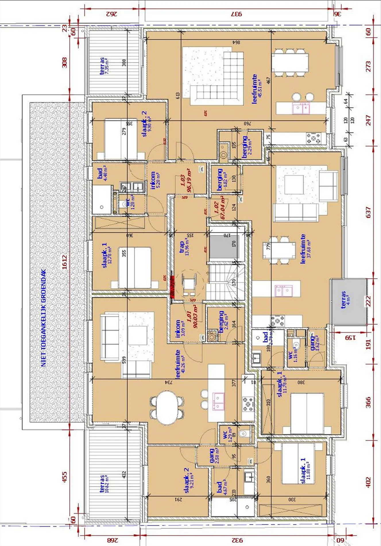 | 2de verdieping | Appartement | 2 | 103 m² | - | 2 | Verkocht | Verkocht |